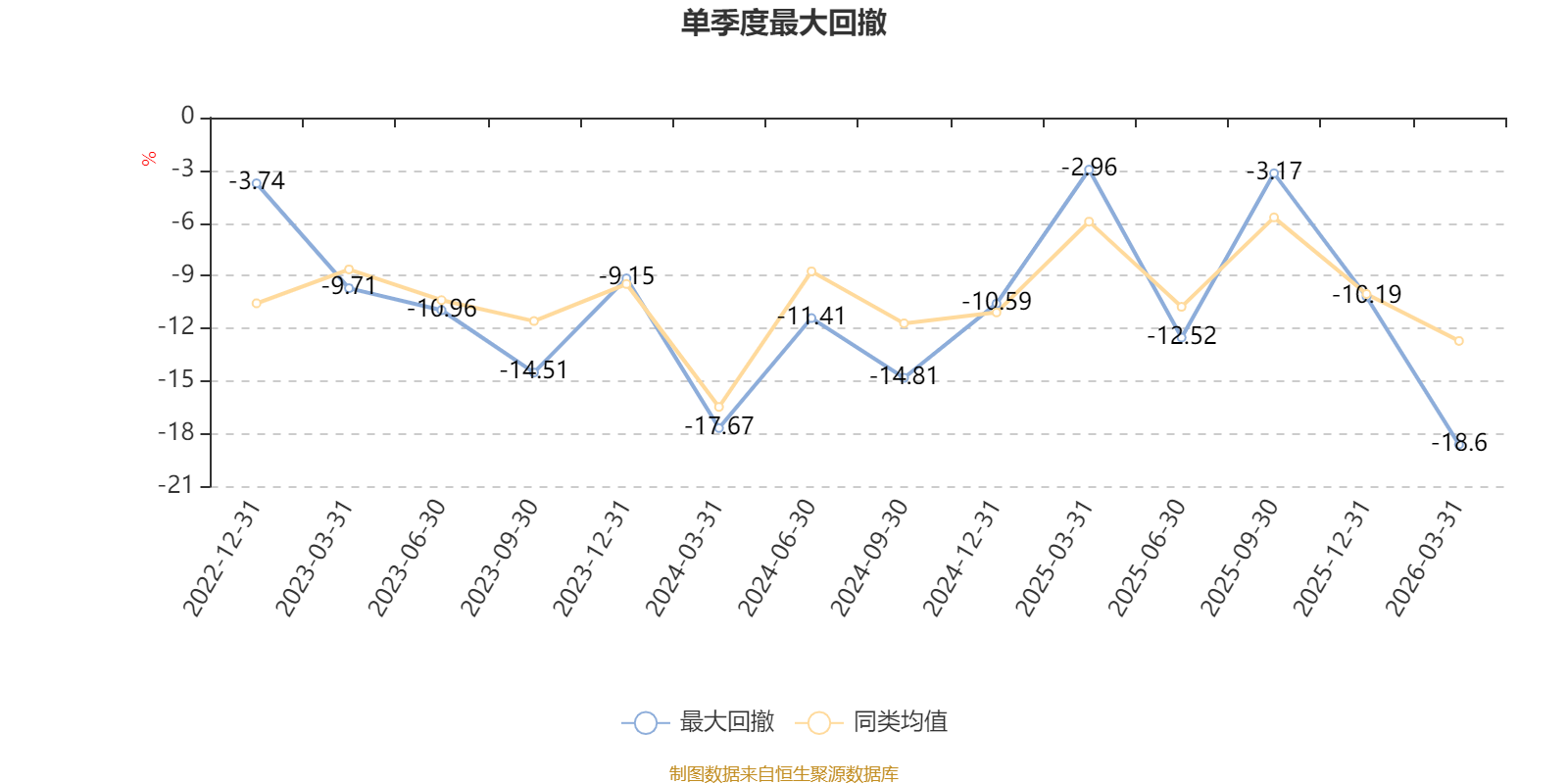 截至4月8日,基金近三年最大回撤为41.6%,同类可比基金排名473/550。单季度最大回撤出现在2026年一季度,为18.6%。