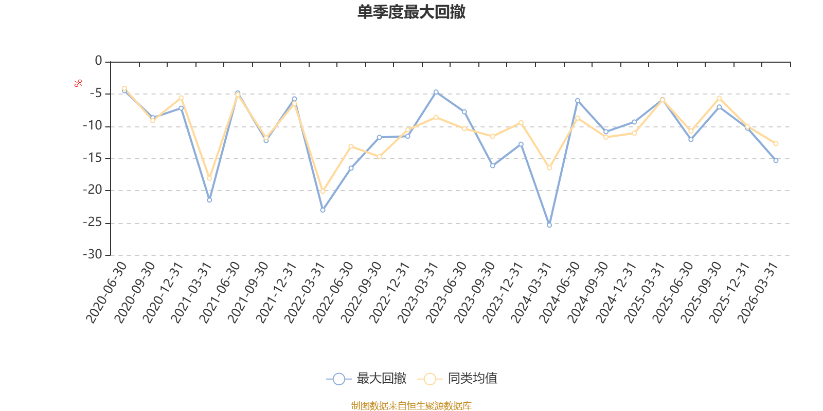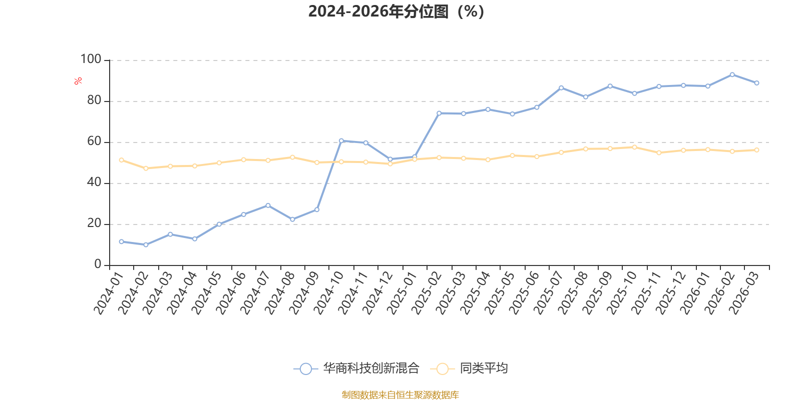 通过所选区间该基金净值增长率分位图,可以观察该基金与同类基金业绩比较情况。图为坐标原点到区间内某时点的净值增长率在同类基金中的分位数。