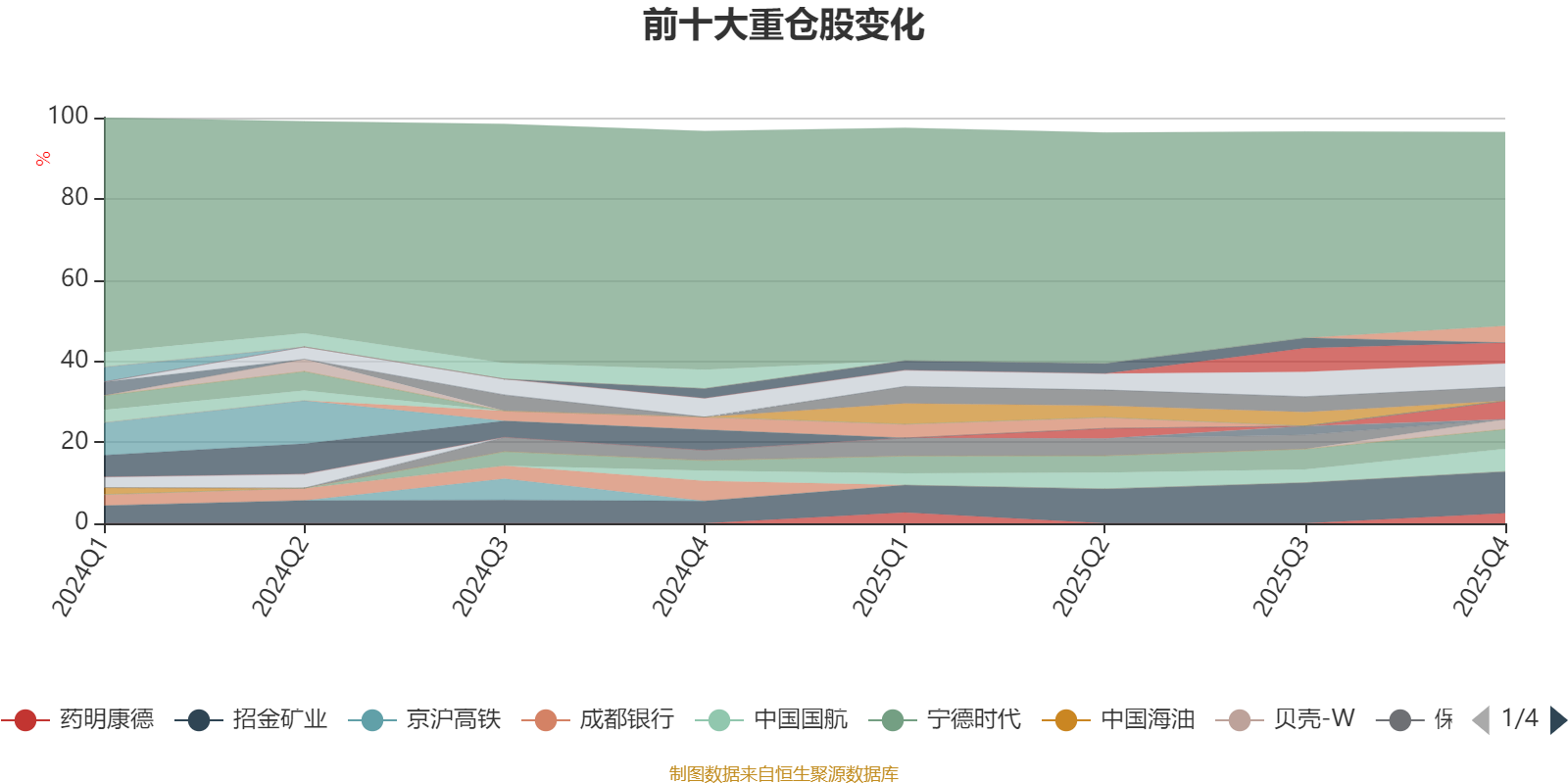 截至2025年末,基金十大重仓股分别是招金矿业、山东黄金、中国国航、立讯精密、宁德时代、中国南方航空股份、中国东方航空股份、招商蛇口、药明康德、贝壳-W。