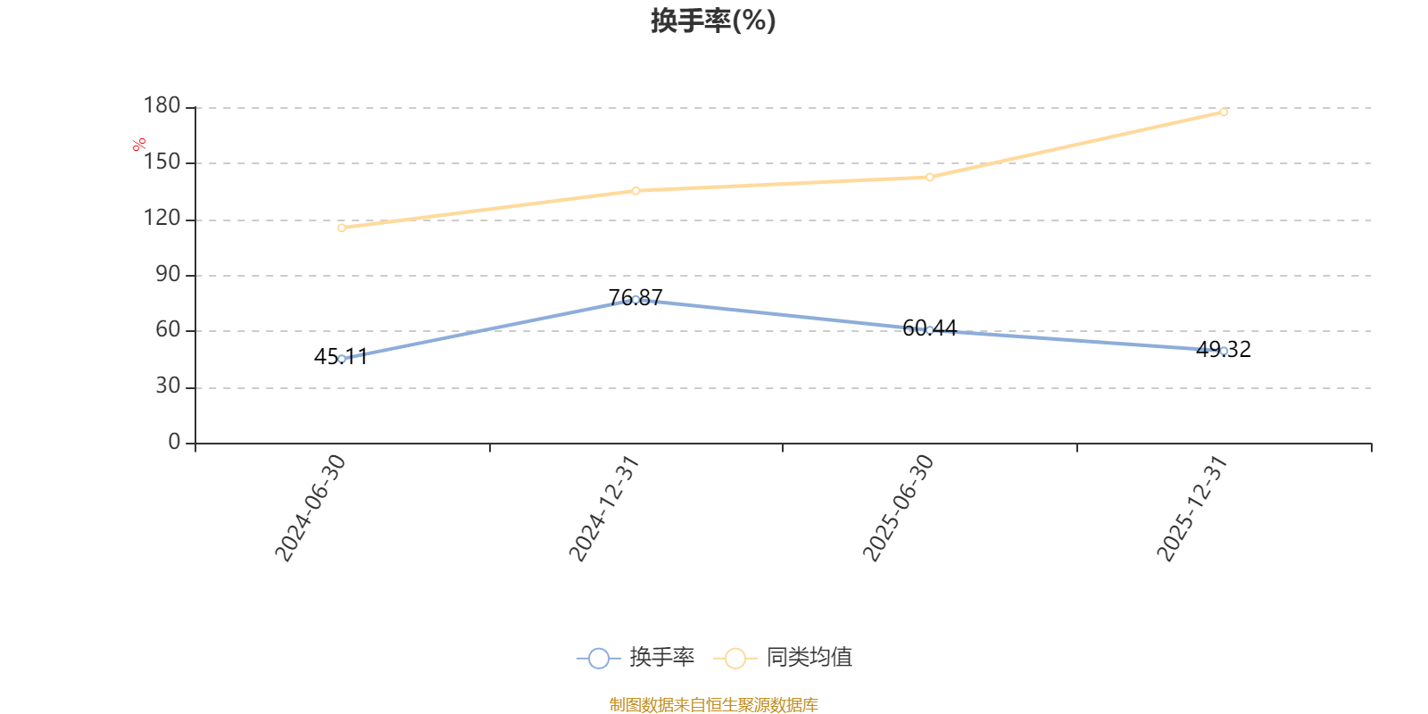 截至2025年12月31日,基金最近一年换手率约107.3%,持续低于同类均值。