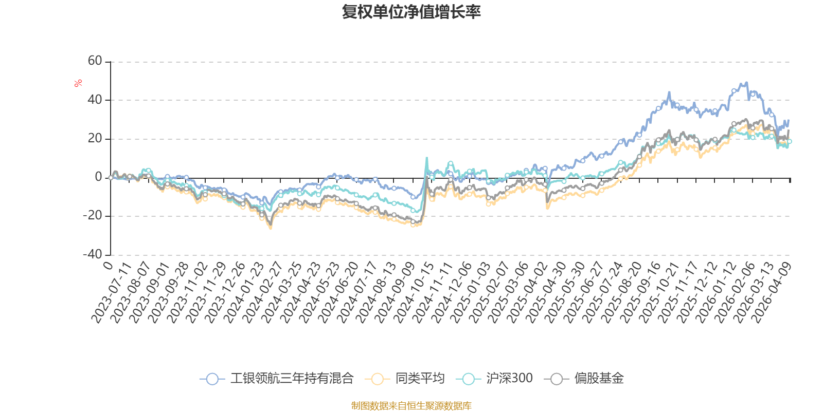 截至4月8日,工银领航三年持有混合近三个月复权单位净值增长率为-8.75%,位于同类可比基金171/185;近半年复权单位净值增长率为-8.34%,位于同类可比基金157/185;近一年复权单位净值增长率为34.76%,位于同类可比基金108/185。
