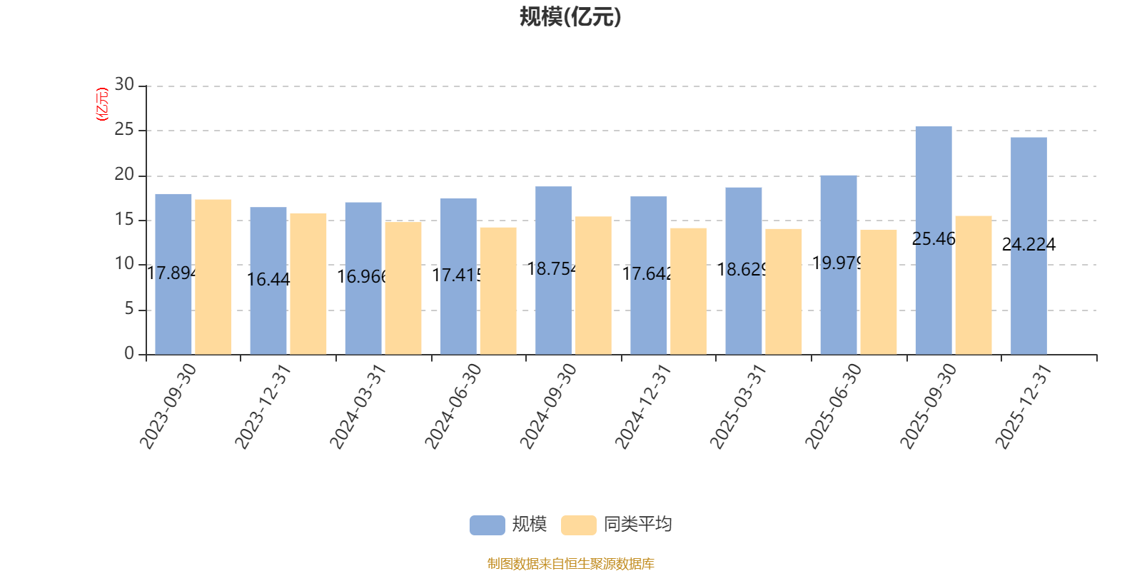 AI基金工银领航三年持有混合(018446)披露2025年年报,2025年基金利润6.43亿元,加权平均基金份额本期利润0.3595元。报告期内,基金净值增长率为36.4%,截至2025年末,基金规模为24.22亿元。