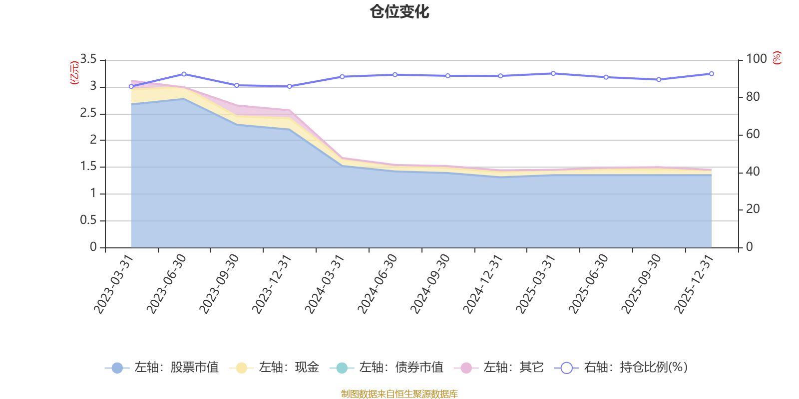 据定期报告数据统计,近三年平均股票仓位为90.21%,同类平均为85.83%。2025年一季度末基金达到92.77%的最高仓位,2023年一季度末最低,为85.86%。