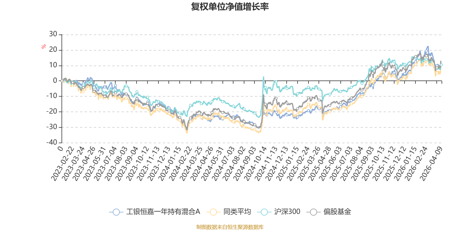 截至4月8日,工银恒嘉一年持有混合A近三个月复权单位净值增长率为1.25%,位于同类可比基金260/621;近半年复权单位净值增长率为6.53%,位于同类可比基金190/621;近一年复权单位净值增长率为47.76%,位于同类可比基金238/618;近三年复权单位净值增长率为10.02%,位于同类可比基金324/559。