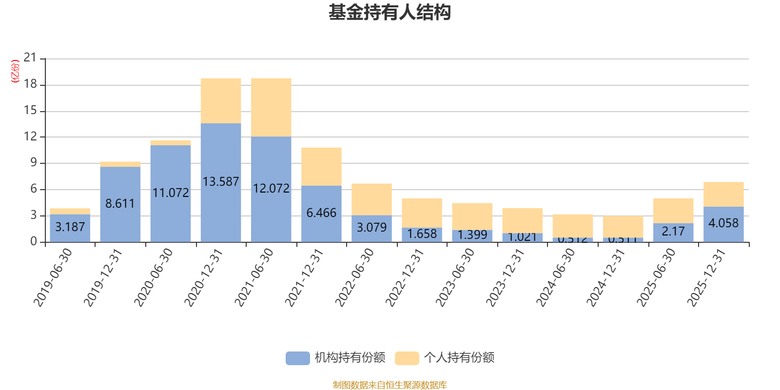 截至2025年12月31日,基金持有人共计5.07万户,合计持有6.87亿份。其中管理人员工持有833.21万份,占比1.21%,机构持有份额占比59.09%,个人投资者占比40.91%。