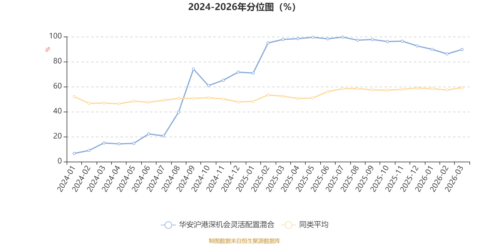 通过所选区间该基金净值增长率分位图,可以观察该基金与同类基金业绩比较情况。图为坐标原点到区间内某时点的净值增长率在同类基金中的分位数。