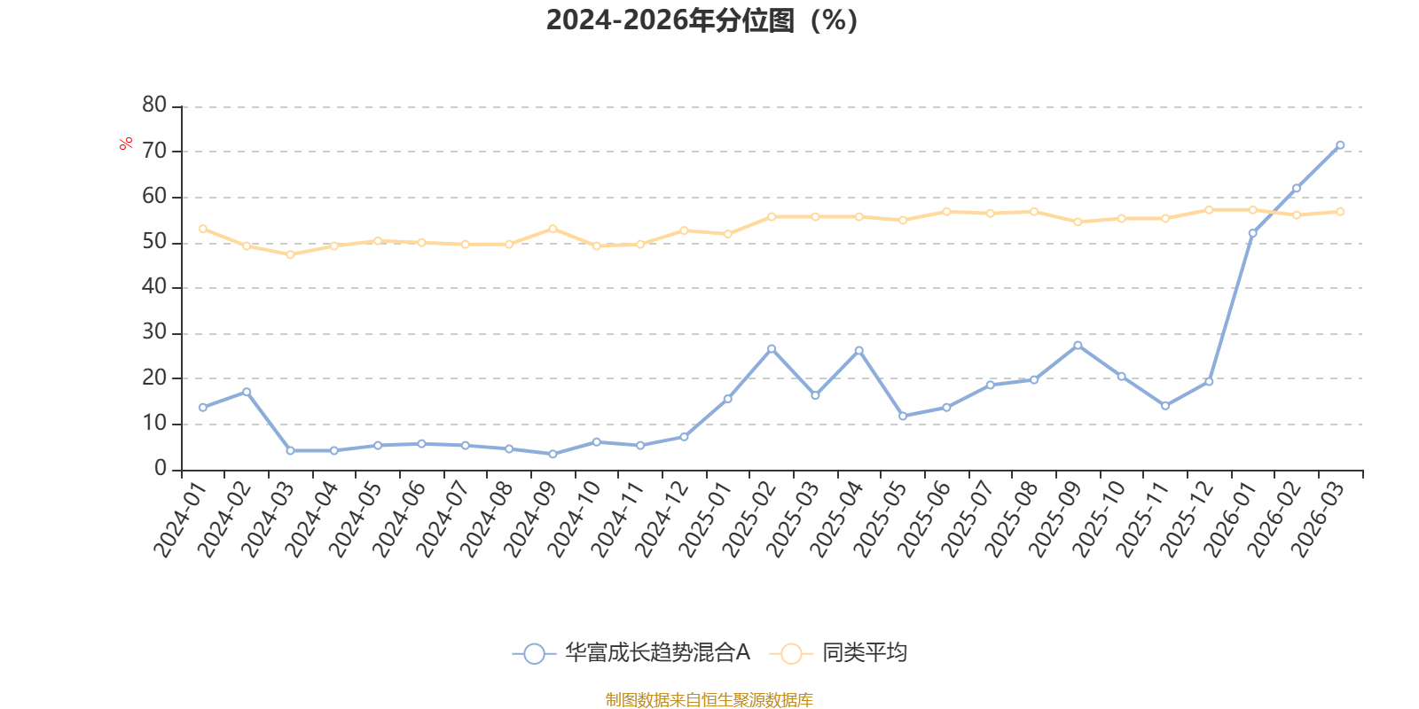 通过所选区间该基金净值增长率分位图,可以观察该基金与同类基金业绩比较情况。图为坐标原点到区间内某时点的净值增长率在同类基金中的分位数。