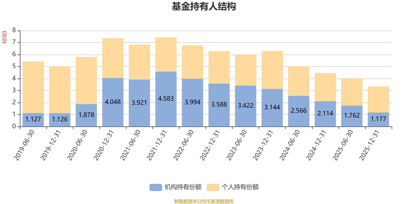 截至2025年12月31日,基金持有人共计2.11万户,合计持有3.35亿份。其中管理人员工持有6万份,占比0.02%,机构持有份额占比35.13%,个人投资者占比64.87%。