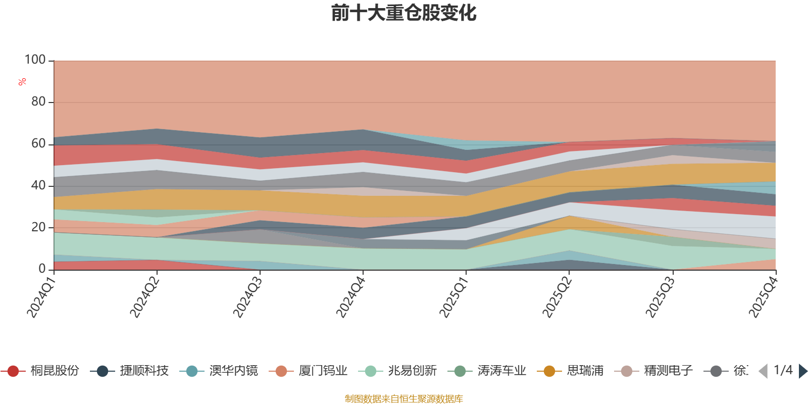 该基金持股集中度较高,近2年前十大重仓股集中度长期超过60%。截至2025年末,基金十大重仓股分别是东山精密、纳芯微、东材科技、歌尔股份、海康威视、南芯科技、云天化、厦门钨业、兆易创新、精测电子。