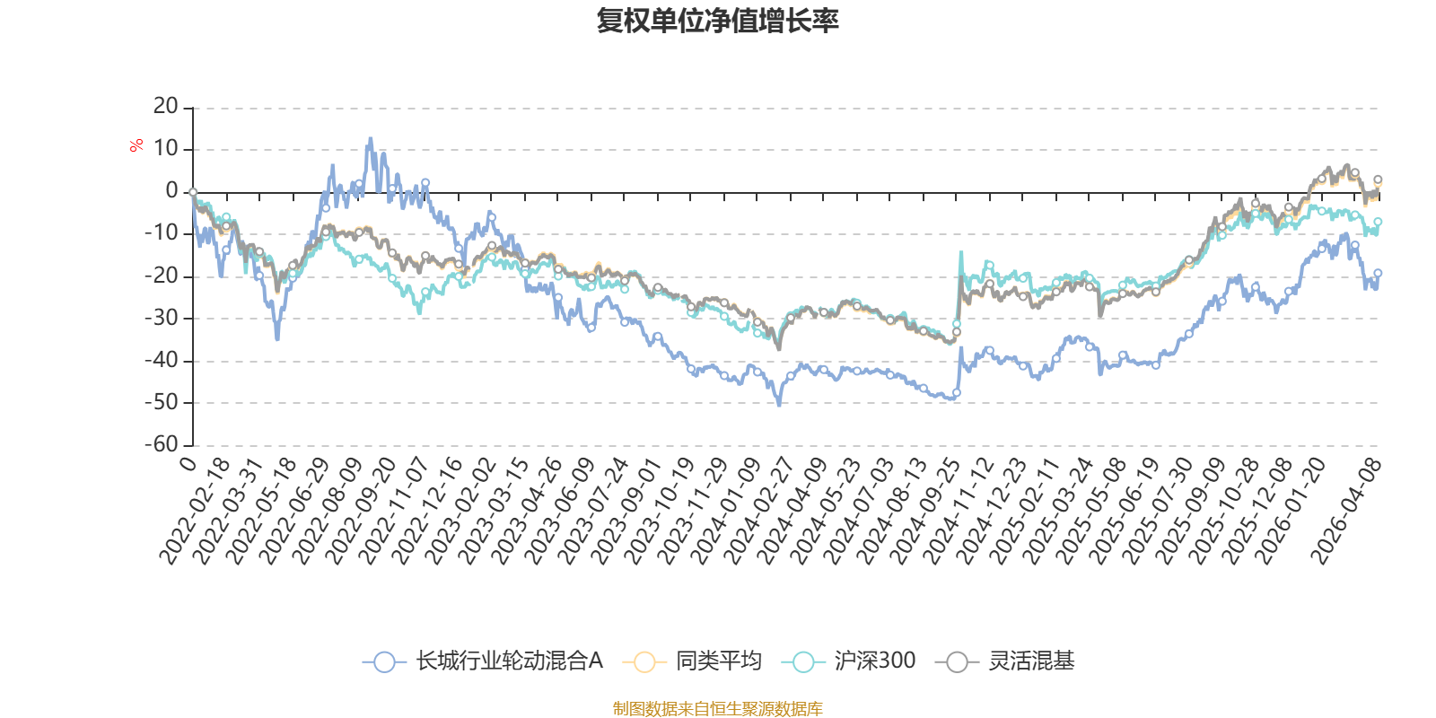 截至4月8日,长城行业轮动混合A近三个月复权单位净值增长率为-4.68%,位于同类可比基金1065/1287;近半年复权单位净值增长率为0.33%,位于同类可比基金845/1286;近一年复权单位净值增长率为42.67%,位于同类可比基金488/1286;近三年复权单位净值增长率为5.43%,位于同类可比基金849/1286。