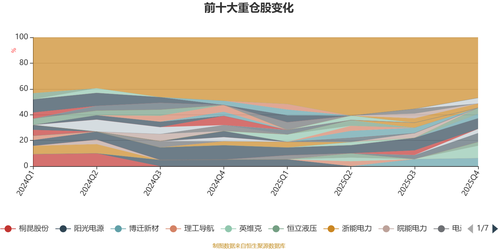 截至2025年末,基金十大重仓股分别是英维克、宁德时代、华丰科技、博迁新材、菲利华、双星新材、大洋生物、金盘科技、四方股份、恒立液压。