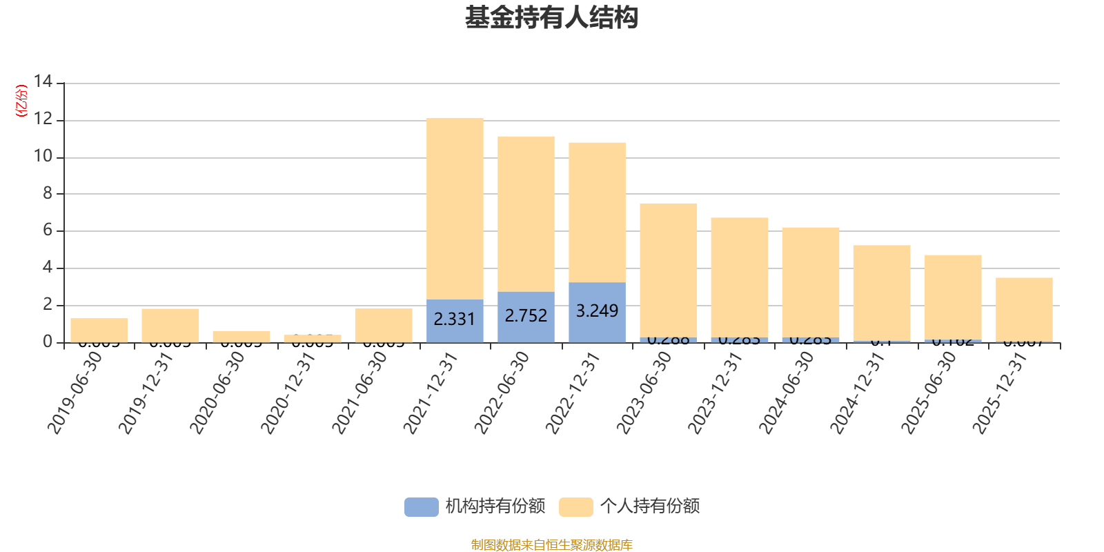 截至2025年12月31日,基金持有人共计6.53万户,合计持有3.5亿份。其中管理人员工持有38.54万份,占比0.11%,机构持有份额占比1.92%,个人投资者占比98.08%。