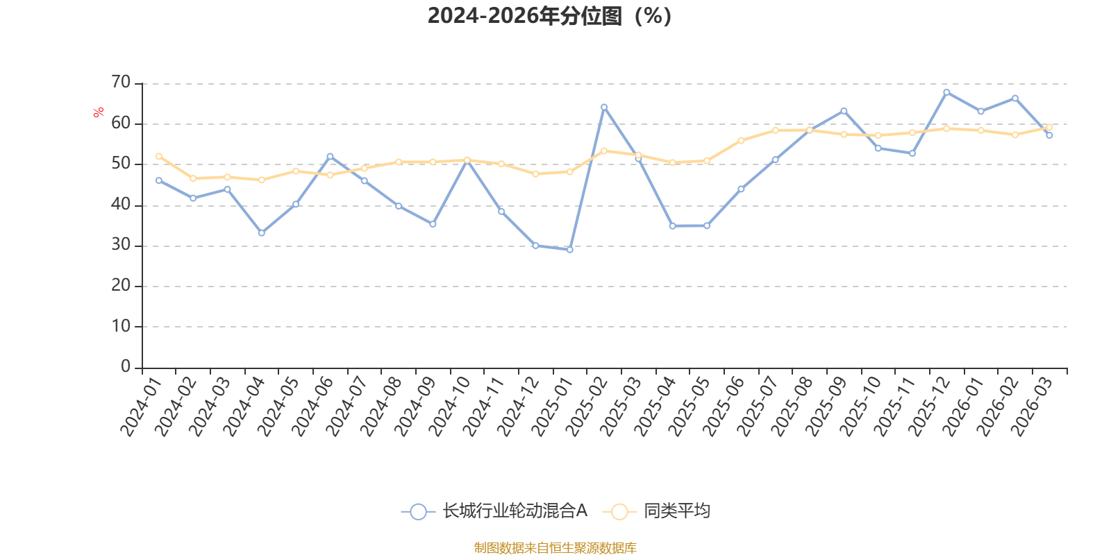 通过所选区间该基金净值增长率分位图,可以观察该基金与同类基金业绩比较情况。图为坐标原点到区间内某时点的净值增长率在同类基金中的分位数。