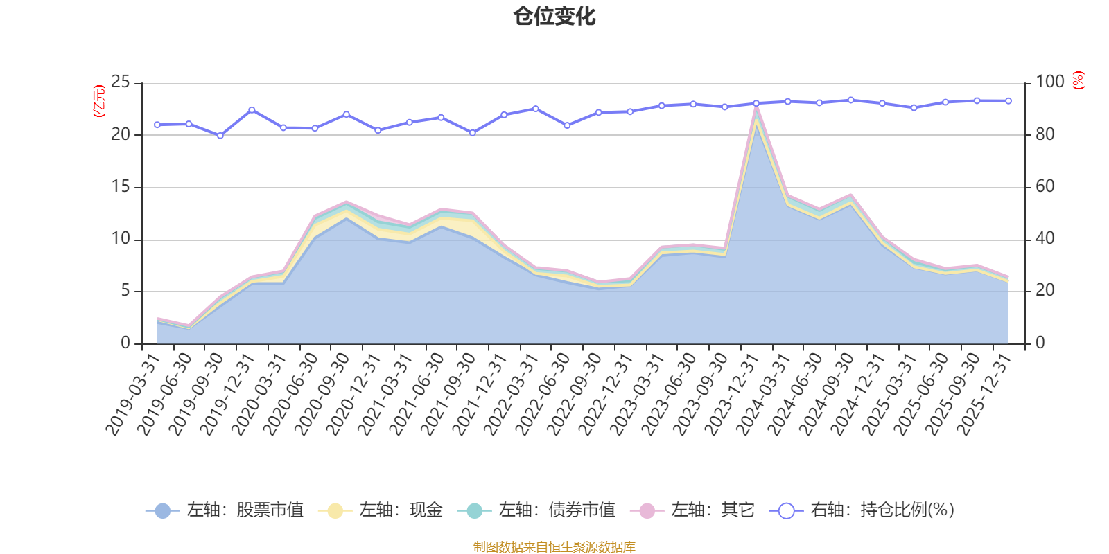 据定期报告数据统计,近三年平均股票仓位为92.26%,同类平均为72.57%。2024年三季度末基金达到93.51%的最高仓位,2019年三季度末最低,为79.87%。