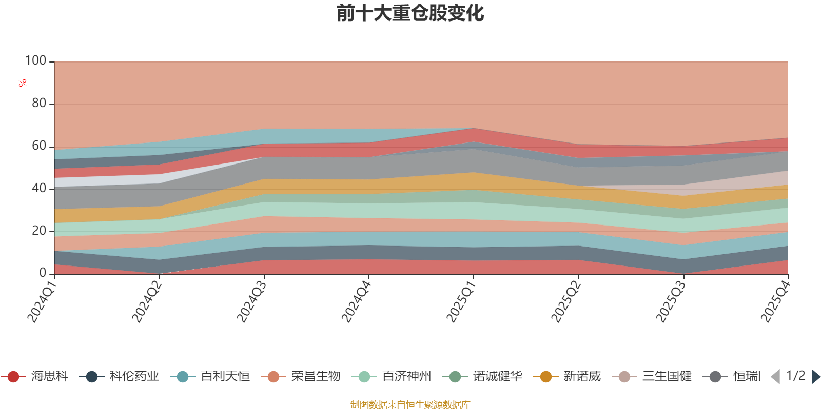 该基金持股集中度较高。截至2025年末,基金十大重仓股分别是恒瑞医药、百济神州、科伦药业、三生国健、新诺威、百利天恒、海思科、信立泰、荣昌生物、诺诚健华。