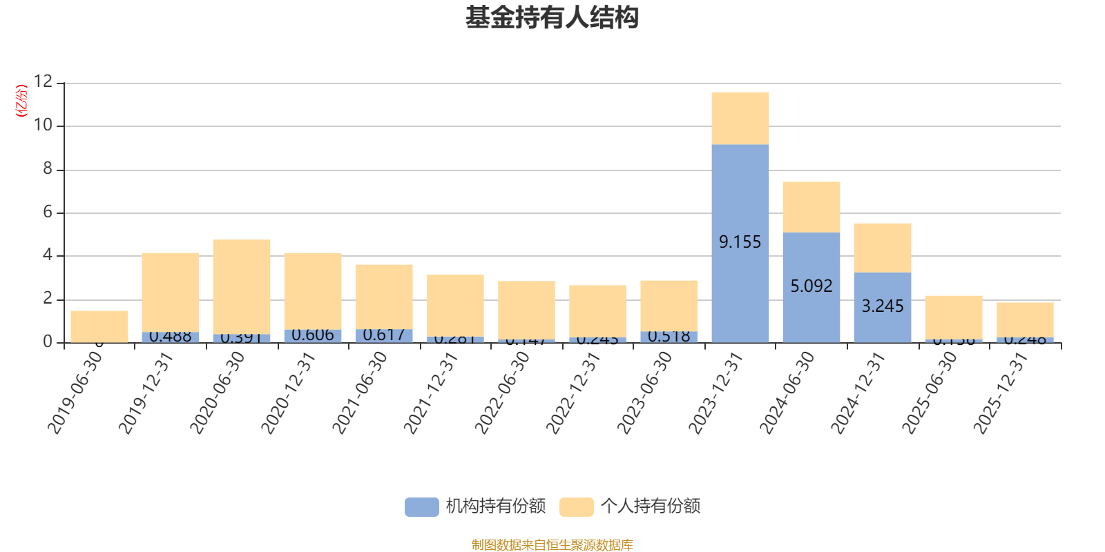 截至2025年12月31日,基金持有人共计3.33万户,合计持有1.85亿份。其中管理人员工持有55.48万份,占比0.30%,机构持有份额占比13.41%,个人投资者占比86.59%。