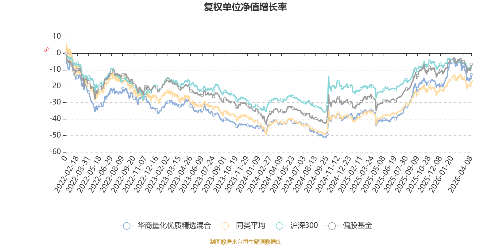 截至4月8日,华商量化优质精选混合近三个月复权单位净值增长率为-4.21%,位于同类可比基金473/621;近半年复权单位净值增长率为2.85%,位于同类可比基金279/621;近一年复权单位净值增长率为54.61%,位于同类可比基金191/618;近三年复权单位净值增长率为20.49%,位于同类可比基金248/559。
