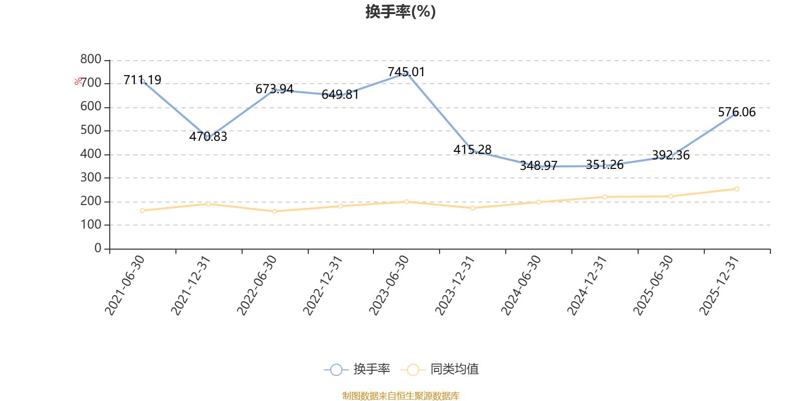 截至2025年12月31日,基金最近一年换手率约959.75%,持续高于同类均值。