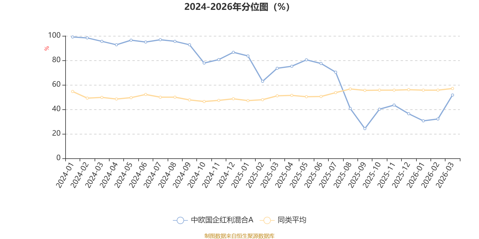 通过所选区间该基金净值增长率分位图,可以观察该基金与同类基金业绩比较情况。图为坐标原点到区间内某时点的净值增长率在同类基金中的分位数。