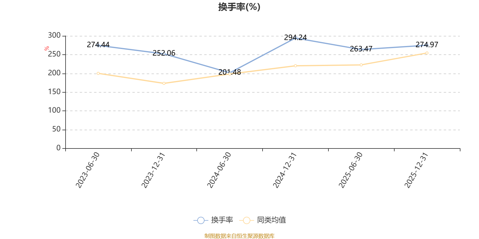 截至2025年12月31日,基金最近一年换手率约535.03%,持续高于同类均值。
