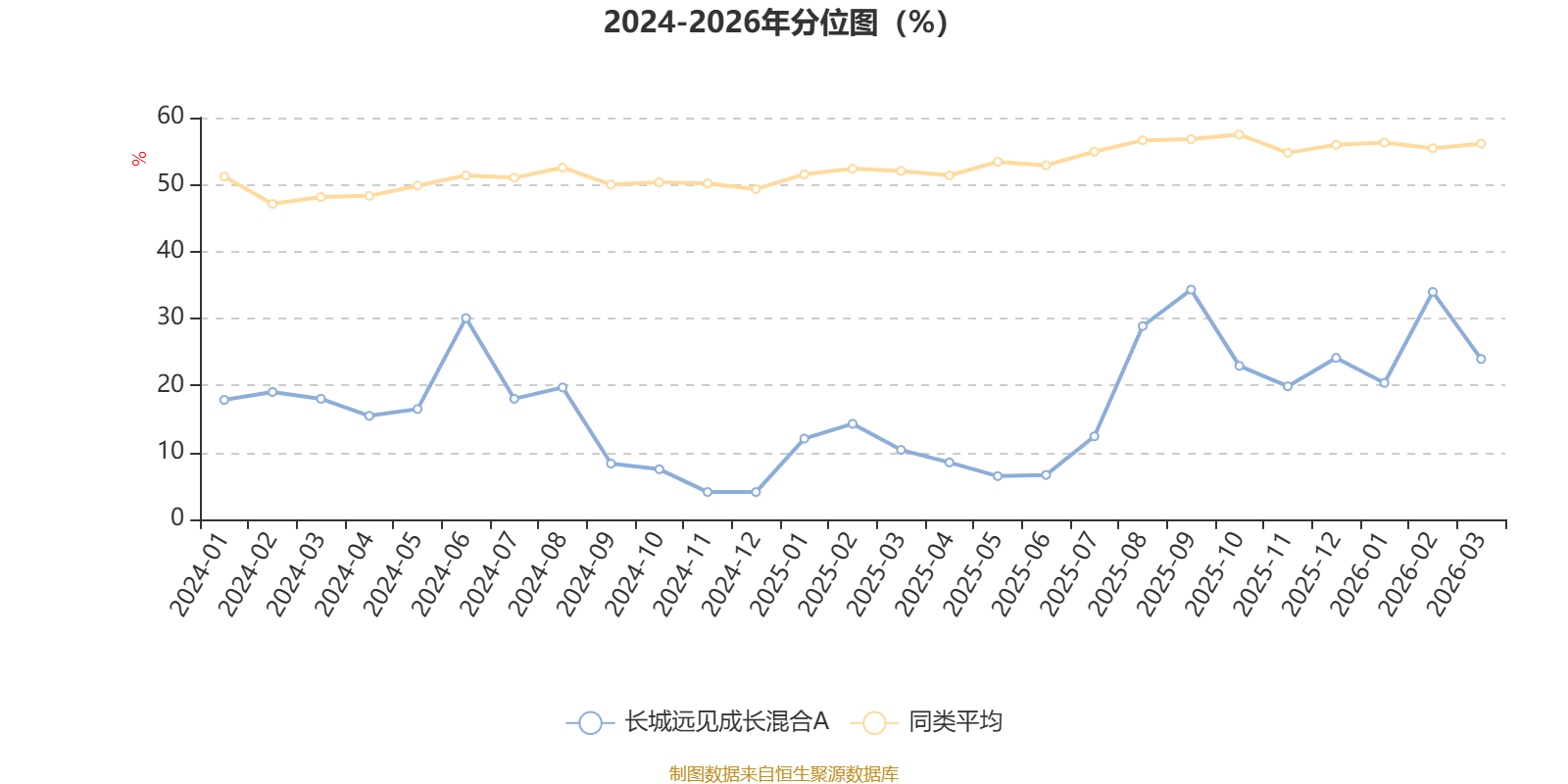通过所选区间该基金净值增长率分位图,可以观察该基金与同类基金业绩比较情况。图为坐标原点到区间内某时点的净值增长率在同类基金中的分位数。