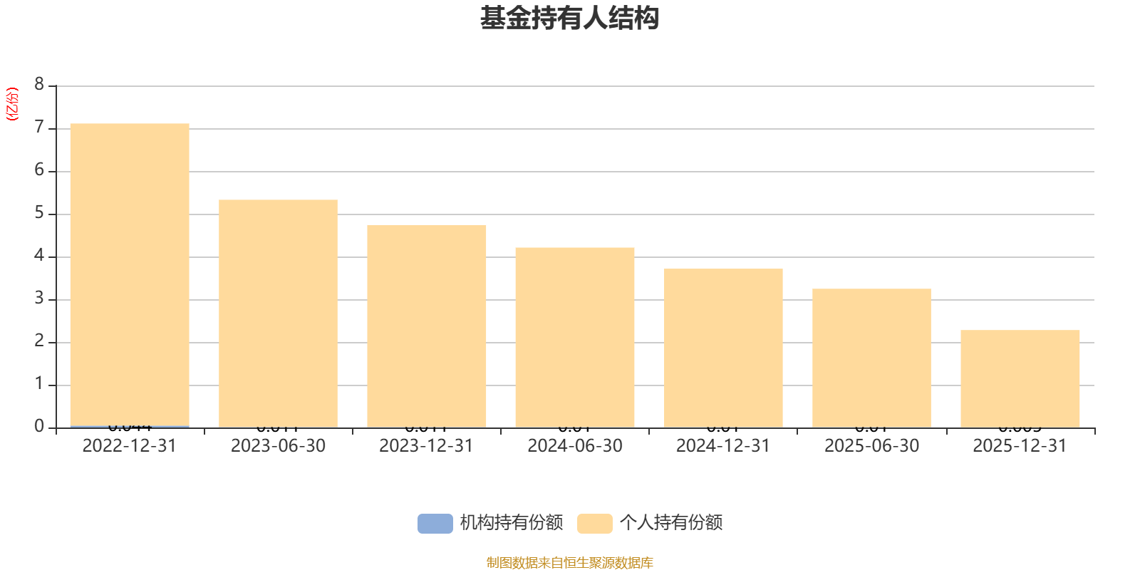 截至2025年12月31日,基金持有人共计3126户,合计持有2.28亿份。其中管理人员工持有97.66万份,占比0.43%,机构持有份额占比0.22%,个人投资者占比99.78%。