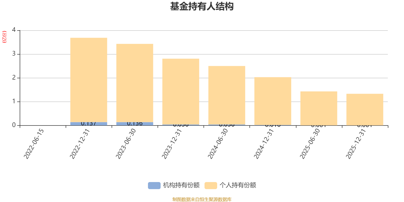 截至2025年12月31日,基金持有人共计1.32万户,合计持有1.33亿份。其中管理人员工持有9.94份,机构持有份额占比0.07%,个人投资者占比99.93%。