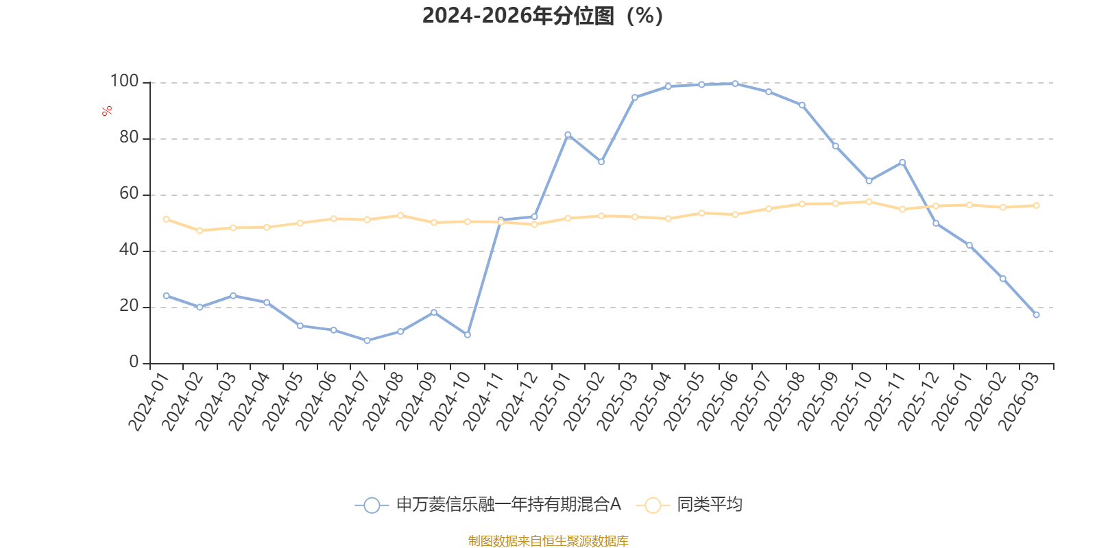 通过所选区间该基金净值增长率分位图,可以观察该基金与同类基金业绩比较情况。图为坐标原点到区间内某时点的净值增长率在同类基金中的分位数。