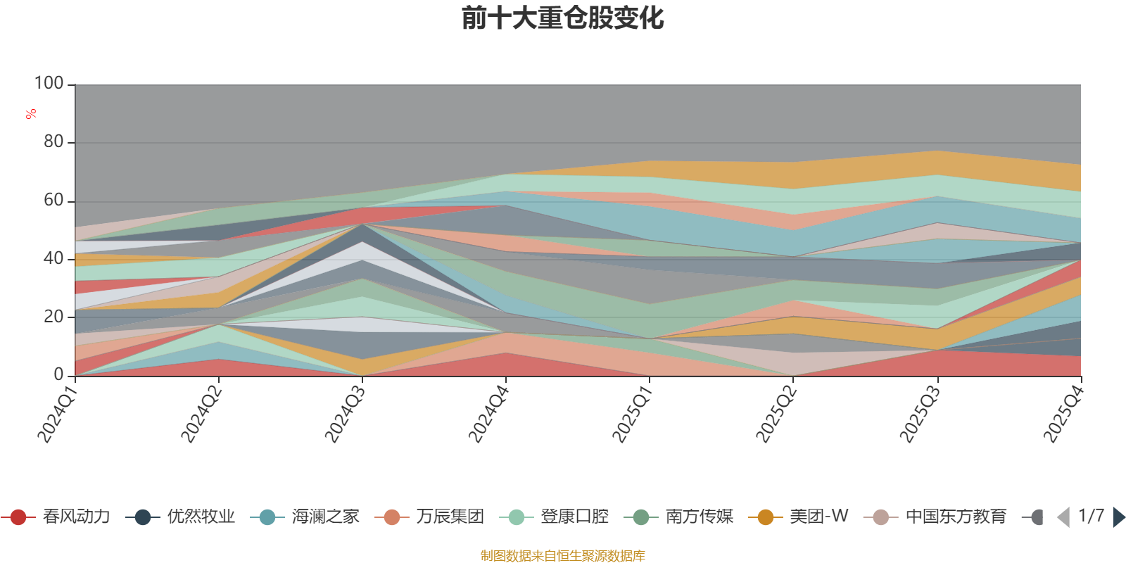 该基金持股集中度较高。截至2025年末,基金十大重仓股分别是潮宏基、老铺黄金、匠心家居、泡泡玛特、春风动力、优然牧业、上美股份、极米科技、心动公司、隆鑫通用。