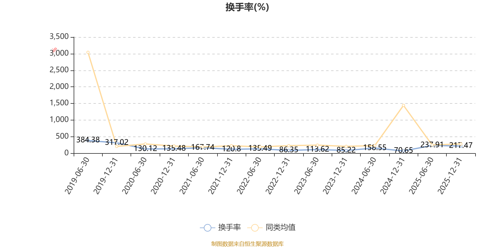 截至2025年12月31日,基金最近一年换手率约389.37%,持续6年低于同类均值。