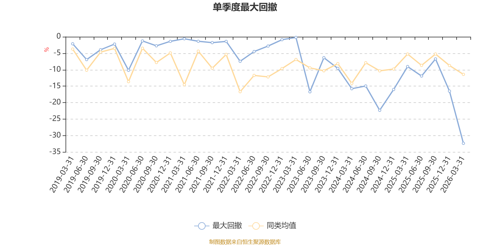 截至4月8日,基金近三年最大回撤为32.34%,同类可比基金排名696/1264。单季度最大回撤出现在2026年一季度,为32.34%。