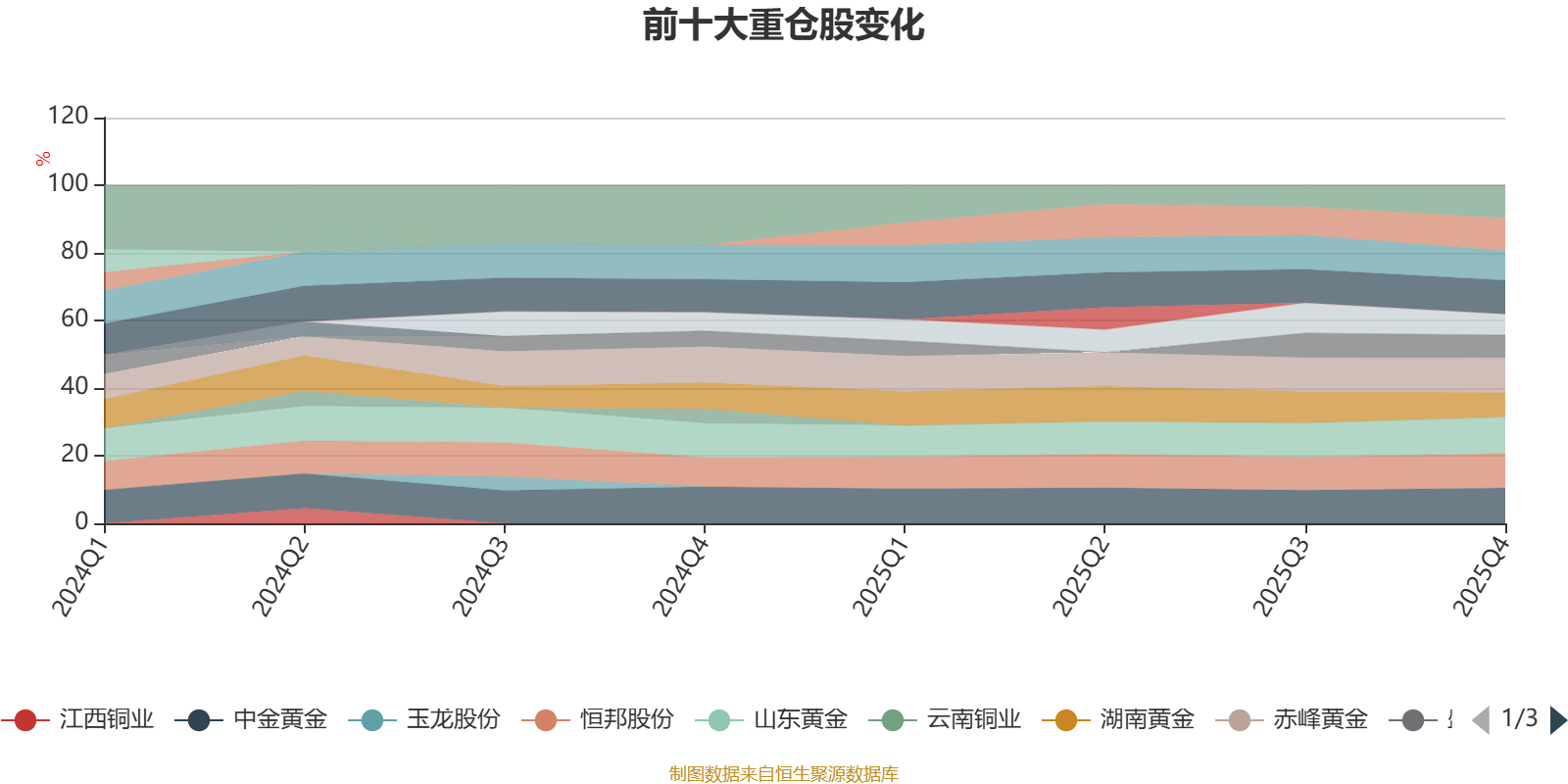 该基金持股集中度较高,且持股标的较为稳定,近2年前十大重仓股集中度长期超过60%。截至2025年末,基金十大重仓股分别是山东黄金、中金黄金、赤峰黄金、恒邦股份、紫金矿业、西部黄金、山金国际、湖南黄金、盛达资源、兴业银锡。