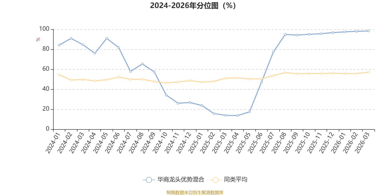 通过所选区间该基金净值增长率分位图,可以观察该基金与同类基金业绩比较情况。图为坐标原点到区间内某时点的净值增长率在同类基金中的分位数。