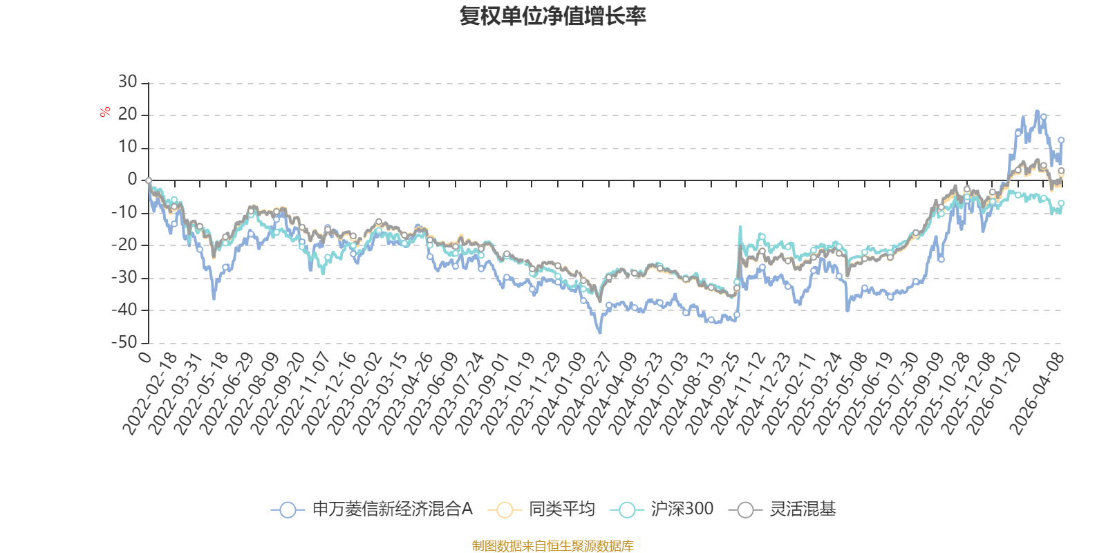 截至4月8日,申万菱信新经济混合A近三个月复权单位净值增长率为5.85%,位于同类可比基金192/1287;近半年复权单位净值增长率为21.28%,位于同类可比基金80/1286;近一年复权单位净值增长率为87.30%,位于同类可比基金124/1286;近三年复权单位净值增长率为29.95%,位于同类可比基金345/1286。