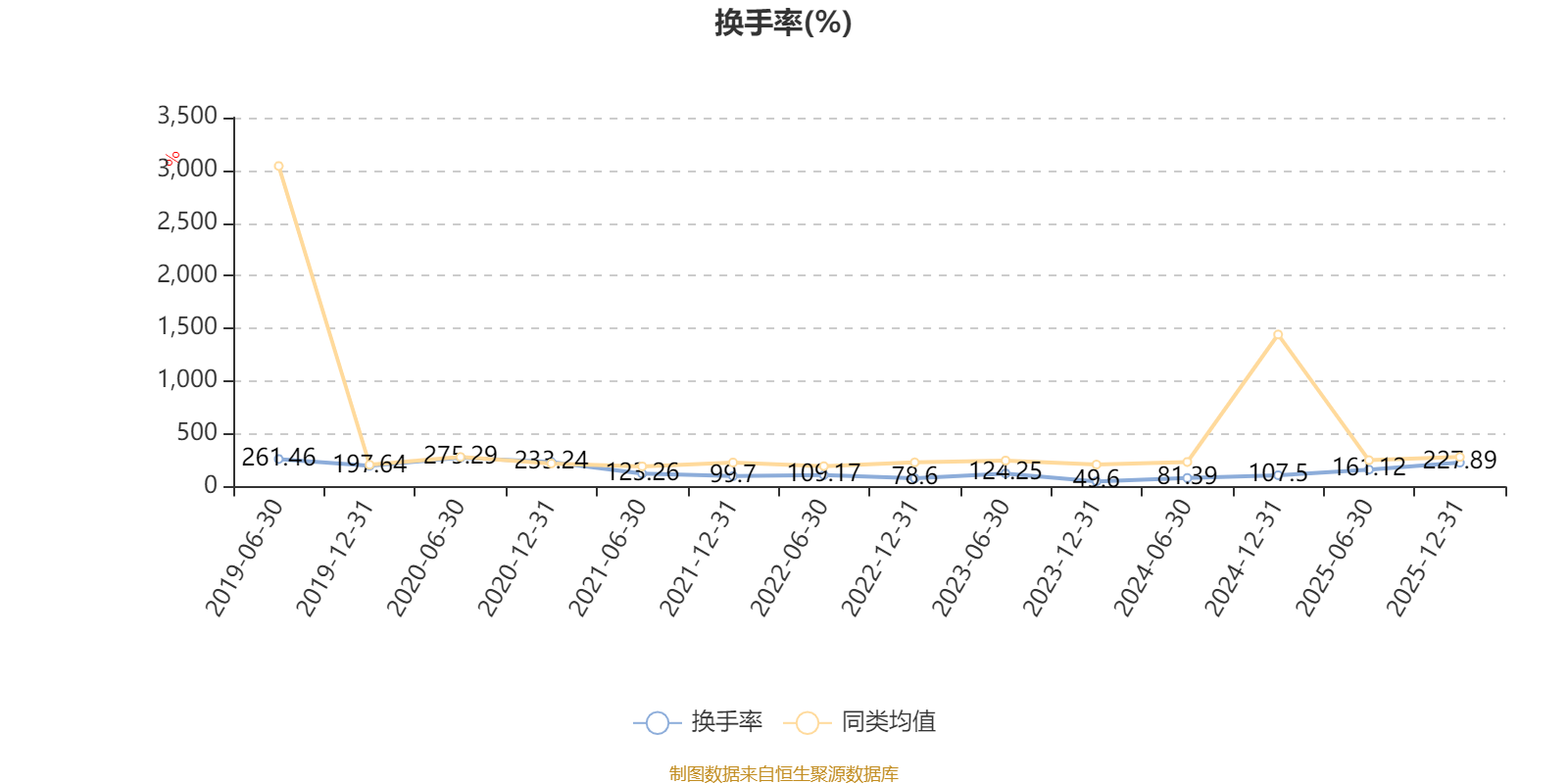 截至2025年12月31日,基金最近一年换手率约389.65%,持续5年低于同类均值。