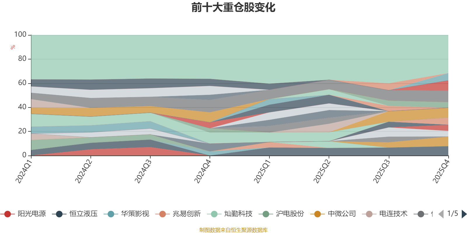该基金持股集中度较高。截至2025年末,基金十大重仓股分别是斯迪克、北方华创、华海清科、中微公司、恒立液压、生益科技、东山精密、精测电子、长川科技、开普云。