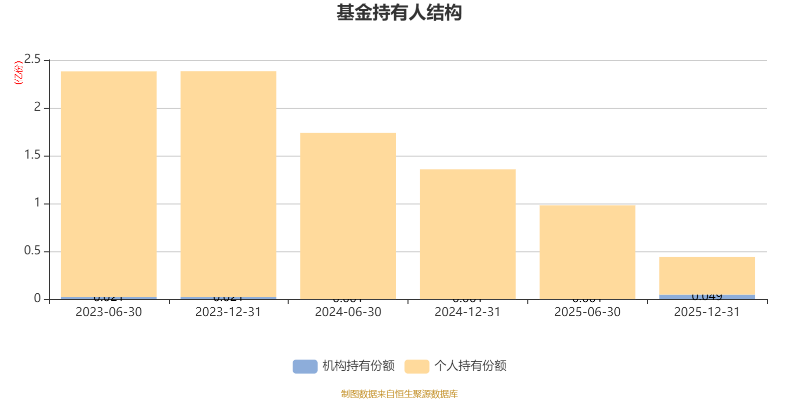 截至2025年12月31日,基金持有人共计492户,合计持有4430.4万份。其中管理人员工持有3.16万份,占比0.07%,机构持有份额占比10.96%,个人投资者占比89.04%。