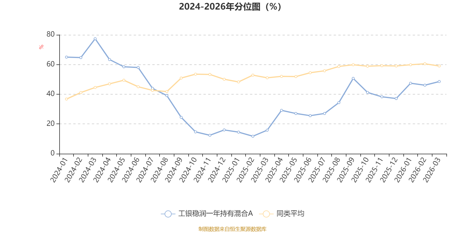 通过所选区间该基金净值增长率分位图,可以观察该基金与同类基金业绩比较情况。图为坐标原点到区间内某时点的净值增长率在同类基金中的分位数。