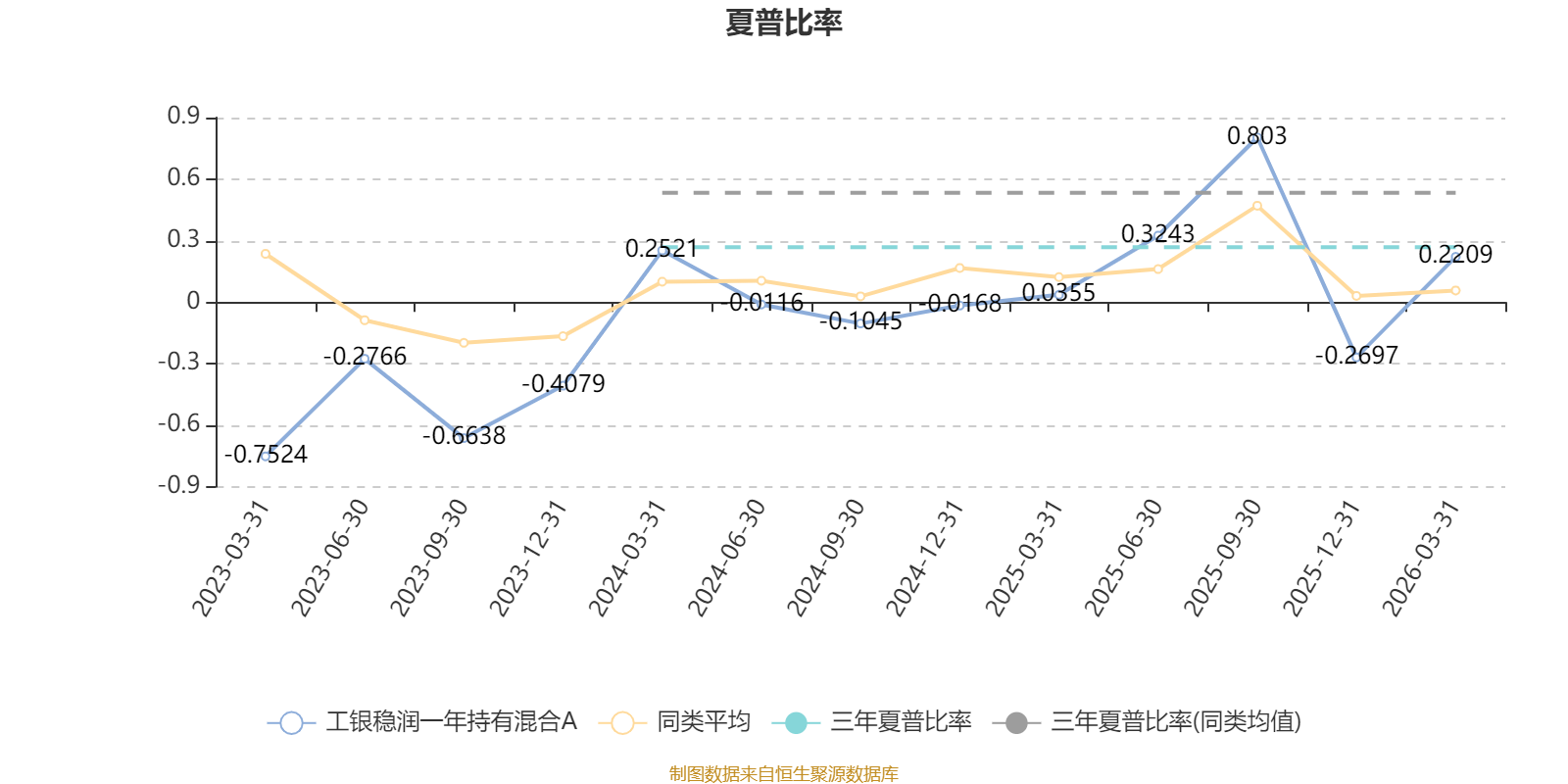 截至3月31日,基金近三年夏普比率为0.2674,位于同类可比基金415/550。
