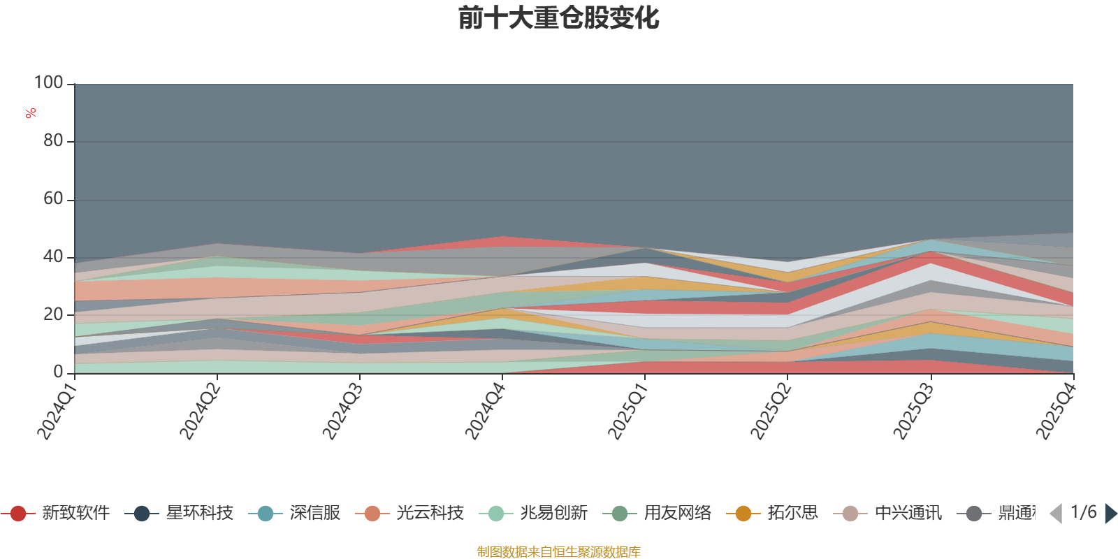 截至2025年末,基金十大重仓股分别是海光信息、寒武纪、浩瀚深度、新易盛、深信服、税友股份、能科科技、宏景科技、星环科技、卓易信息。