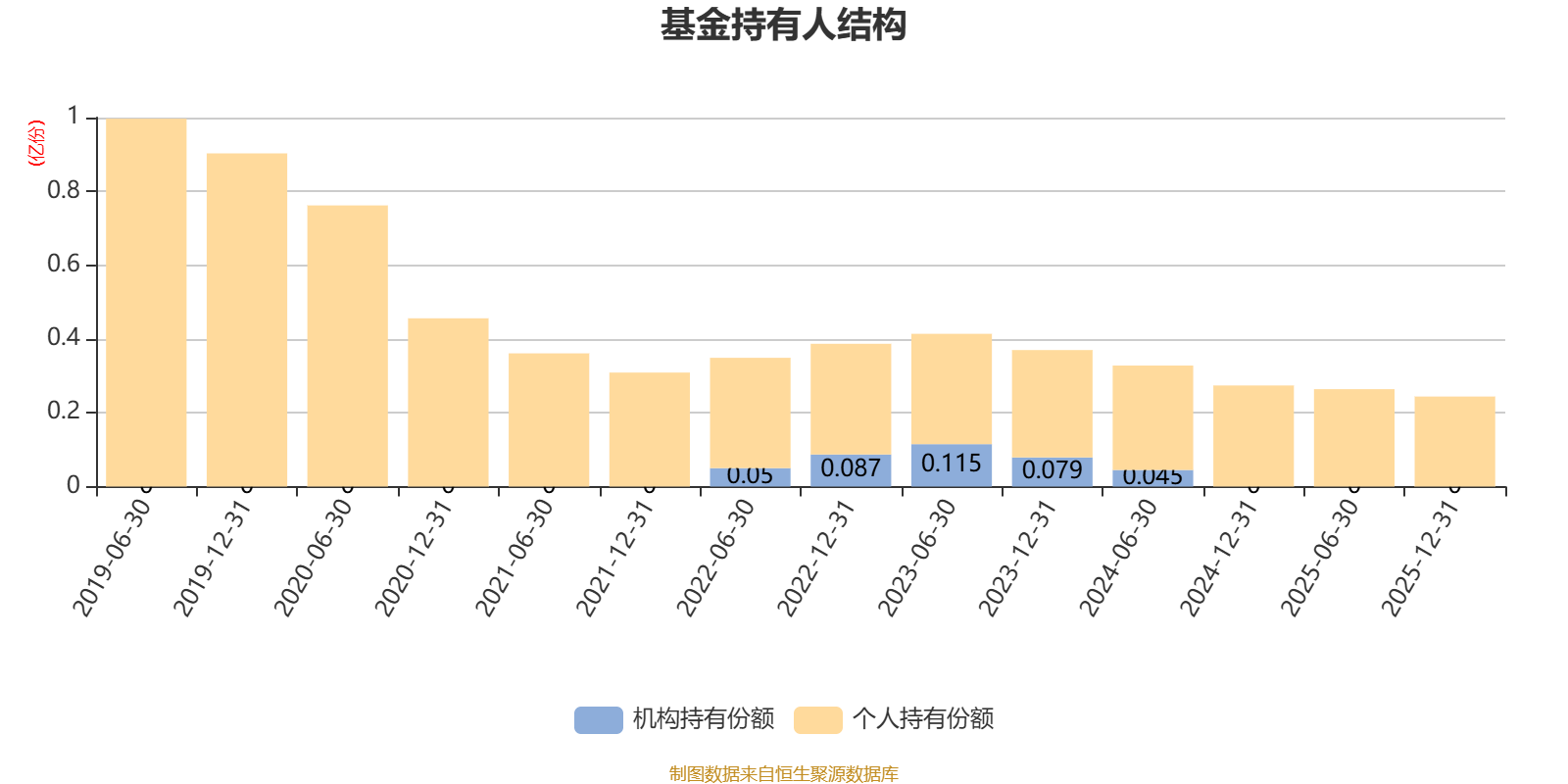 截至2025年12月31日,基金持有人共计1828户,合计持有2443.42万份。其中管理人员工持有466.27份,机构持有份额占比0.10%,个人投资者占比99.90%。