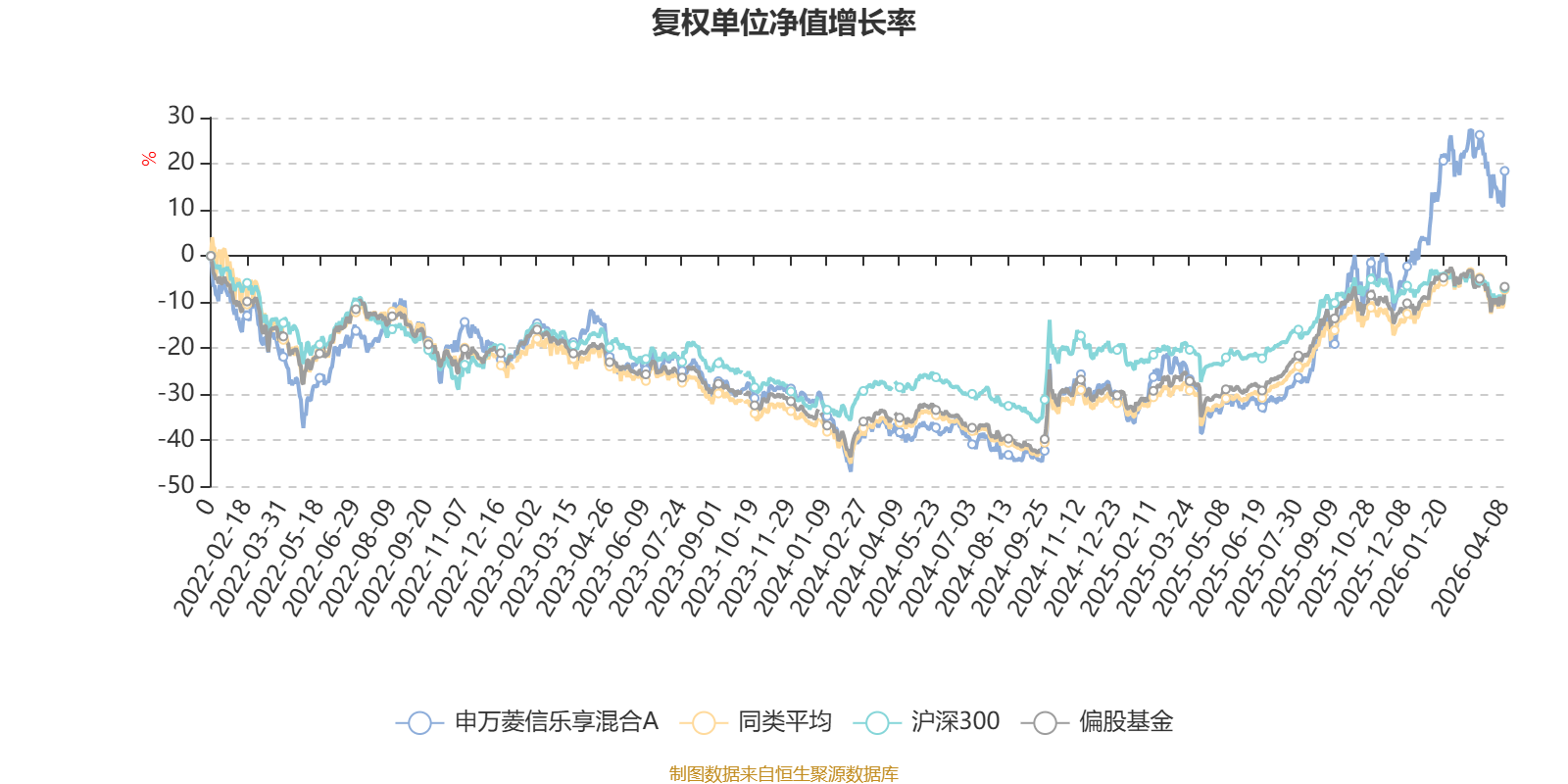 截至4月8日,申万菱信乐享混合A近三个月复权单位净值增长率为6.04%,位于同类可比基金39/265;近半年复权单位净值增长率为20.74%,位于同类可比基金11/265;近一年复权单位净值增长率为91.89%,位于同类可比基金18/265;近三年复权单位净值增长率为34.83%,位于同类可比基金63/261。