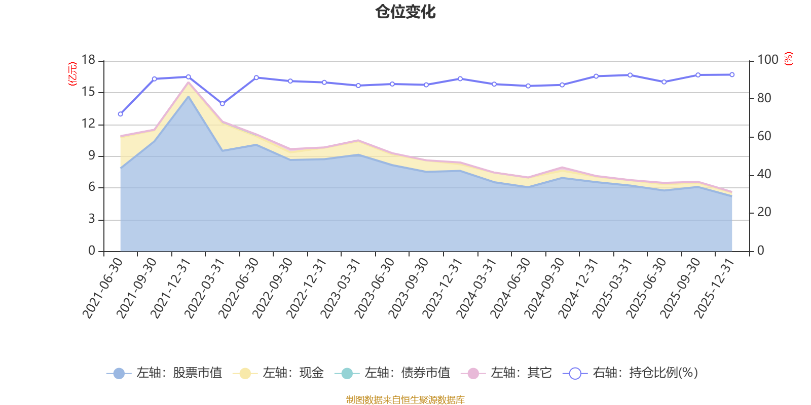 据定期报告数据统计,近三年平均股票仓位为89.43%,同类平均为86.12%。2025年末基金达到92.72%的最高仓位,2021年上半年末最低,为72.05%。