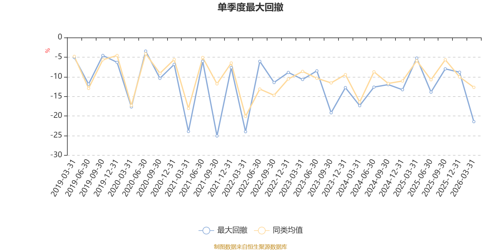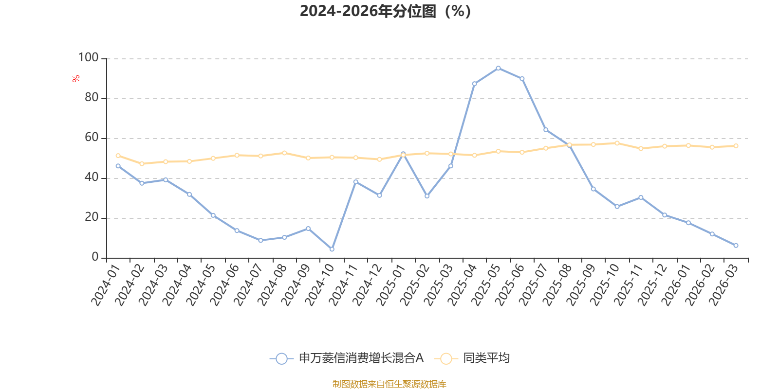 通过所选区间该基金净值增长率分位图,可以观察该基金与同类基金业绩比较情况。图为坐标原点到区间内某时点的净值增长率在同类基金中的分位数。