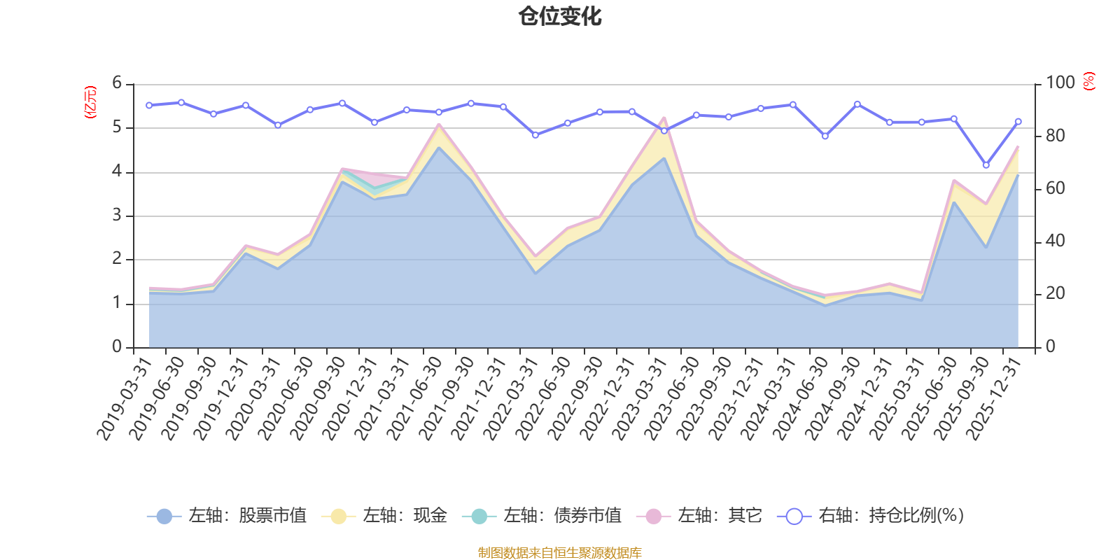 据定期报告数据统计,近三年平均股票仓位为85.52%,同类平均为85.83%。2019年上半年末基金达到92.98%的最高仓位,2025年三季度末最低,为69.25%。