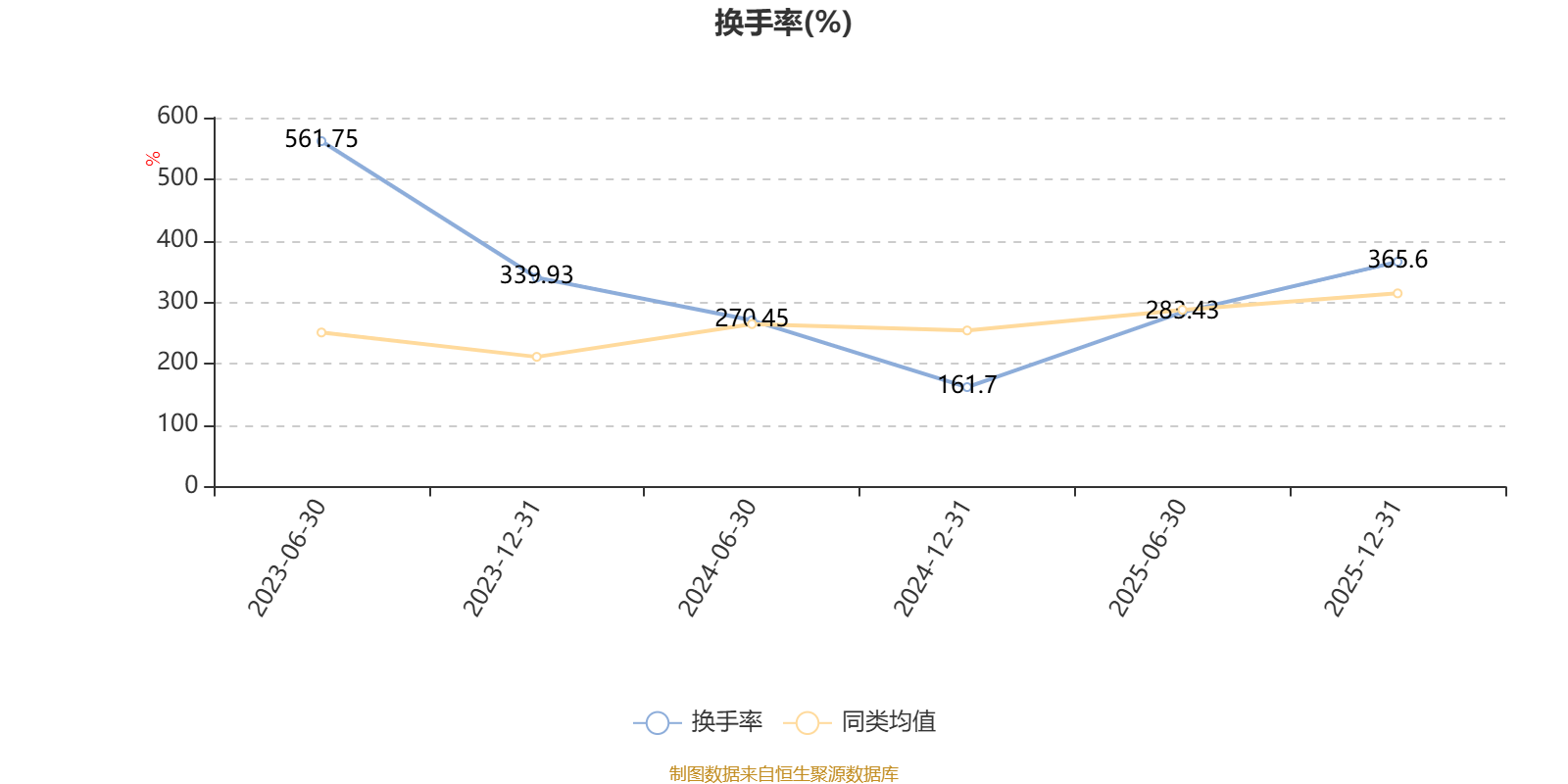 截至2025年12月31日,基金最近一年换手率约638.53%。