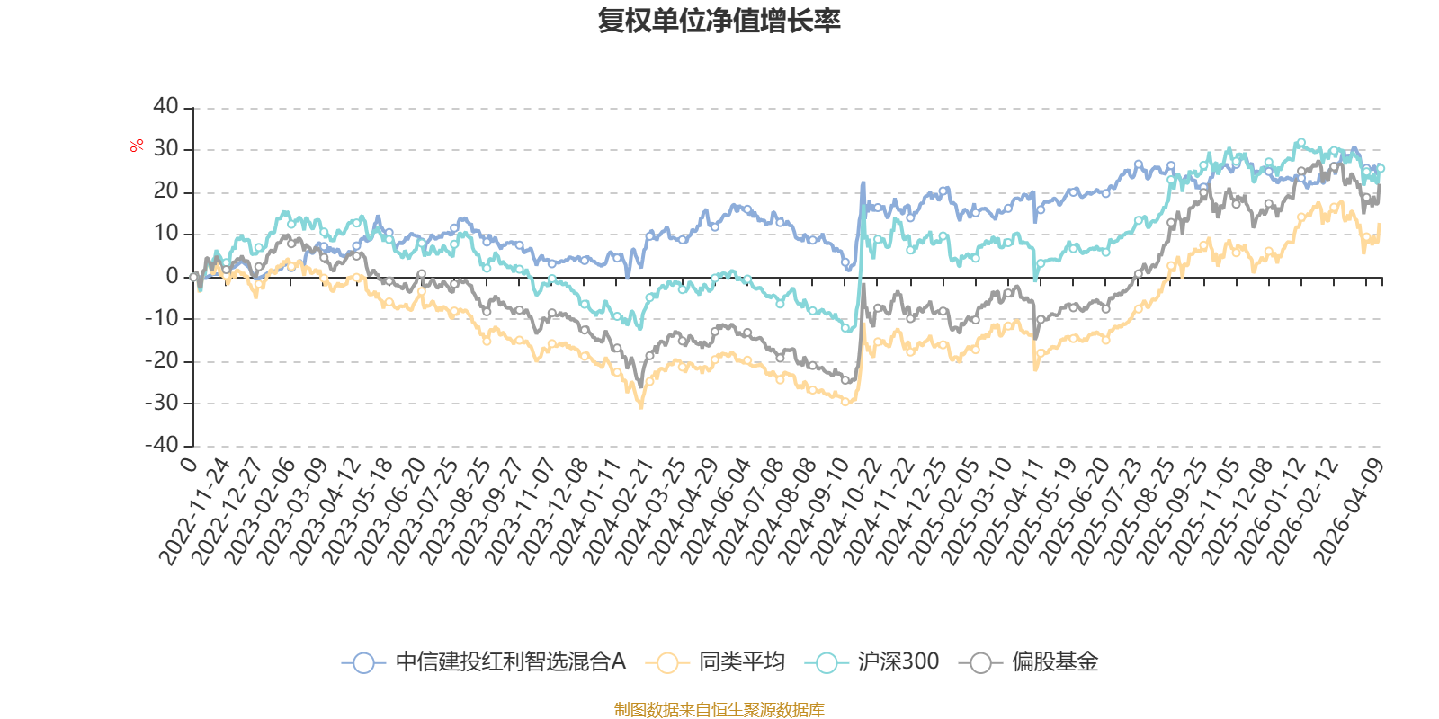 截至4月8日,中信建投红利智选混合A近三个月复权单位净值增长率为3.29%,位于同类可比基金192/689;近半年复权单位净值增长率为4.42%,位于同类可比基金294/689;近一年复权单位净值增长率为10.16%,位于同类可比基金628/685;近三年复权单位净值增长率为20.00%,位于同类可比基金163/417。