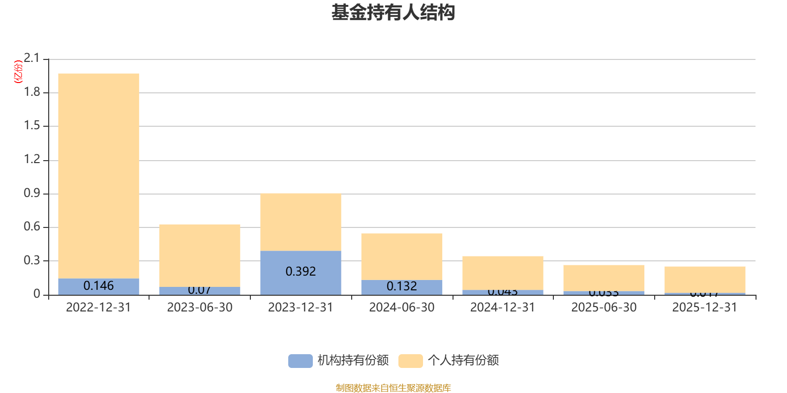 截至2025年12月31日,基金持有人共计1216户,合计持有2508.44万份。其中管理人员工持有23.89万份,占比0.95%,机构持有份额占比6.82%,个人投资者占比93.18%。