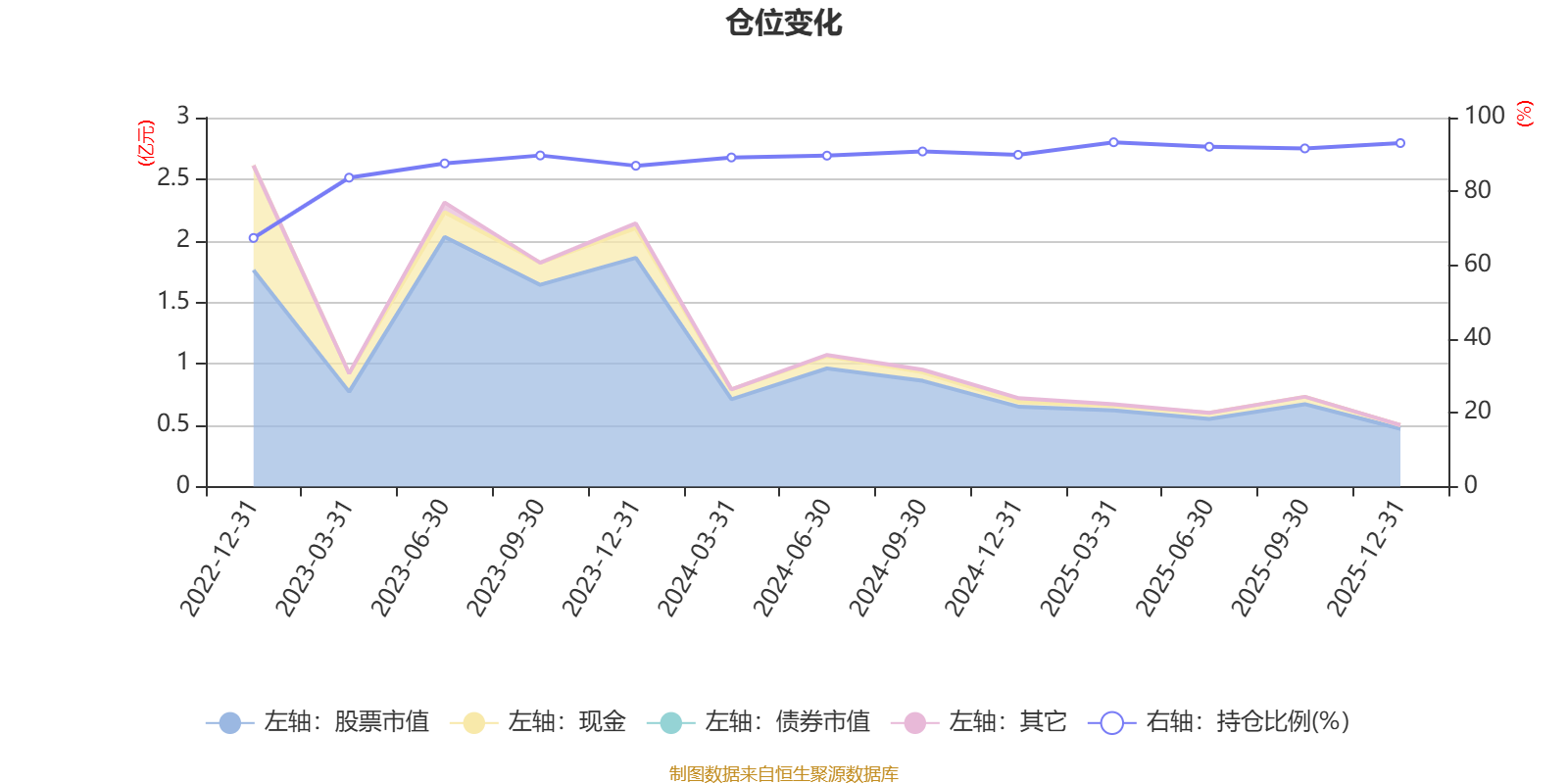 据定期报告数据统计,近三年平均股票仓位为89.82%,同类平均为84.04%。2025年一季度末基金达到93.32%的最高仓位,2022年末最低,为67.38%。