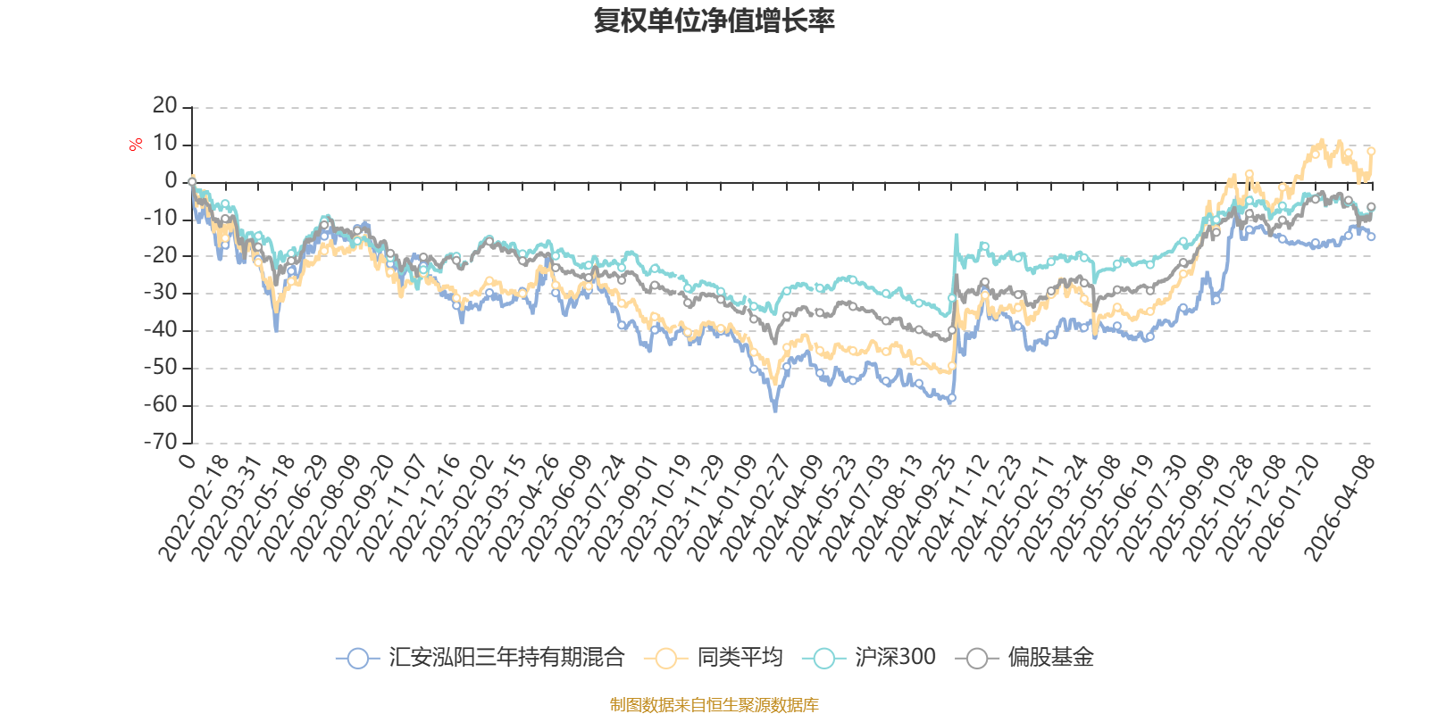 截至4月8日,汇安泓阳三年持有期混合近三个月复权单位净值增长率为2.81%,位于同类可比基金99/229;近半年复权单位净值增长率为-2.92%,位于同类可比基金157/229;近一年复权单位净值增长率为46.18%,位于同类可比基金166/229;近三年复权单位净值增长率为11.80%,位于同类可比基金136/171。